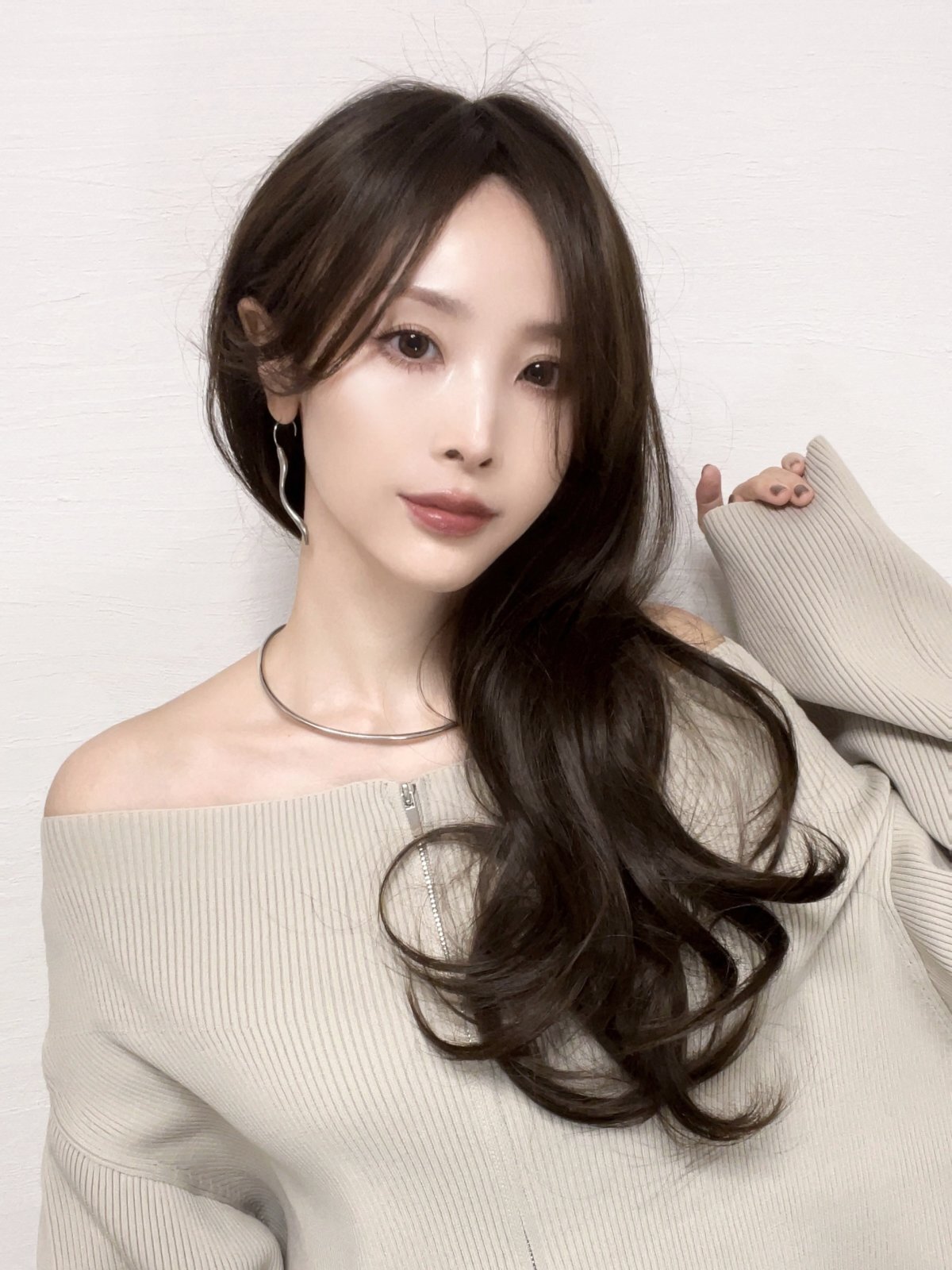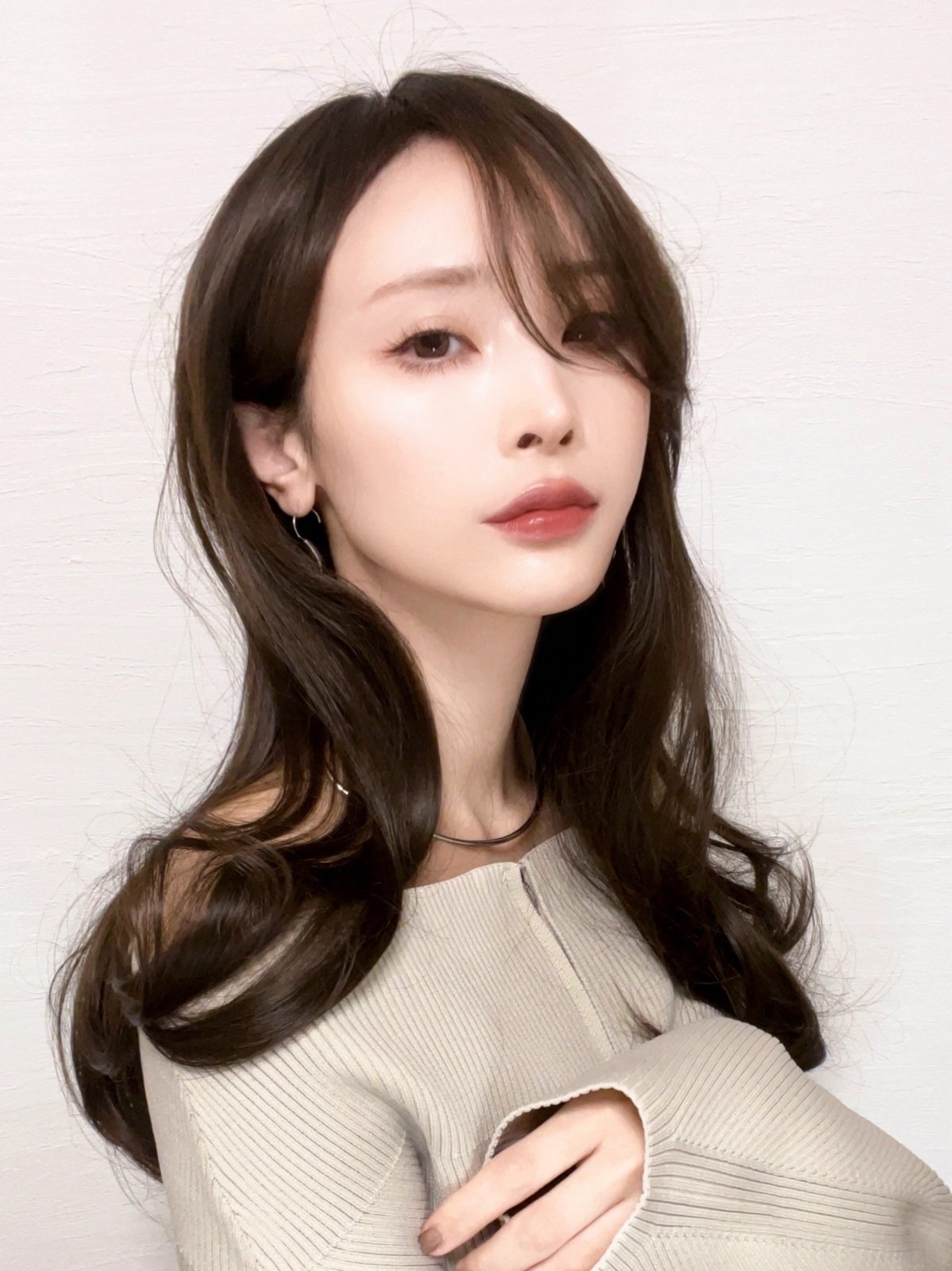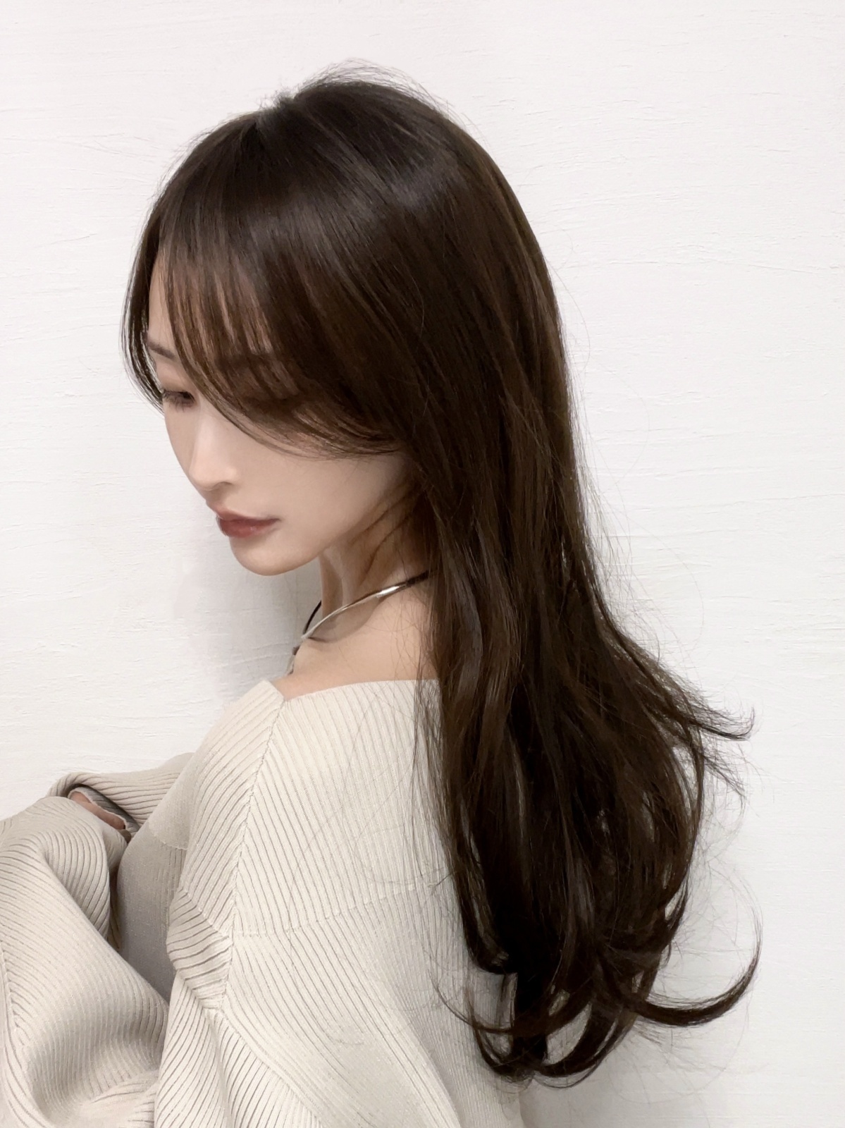 (フェイスレイヤー,フェイスレイヤーカット,エギョモリ,後れ毛,韓国風ヘア,小顔カット,韓国スタイル,ロングヘア,センターパート,センター分け,うざバング,ウィッグ,ローレイヤー,レイヤーロング)