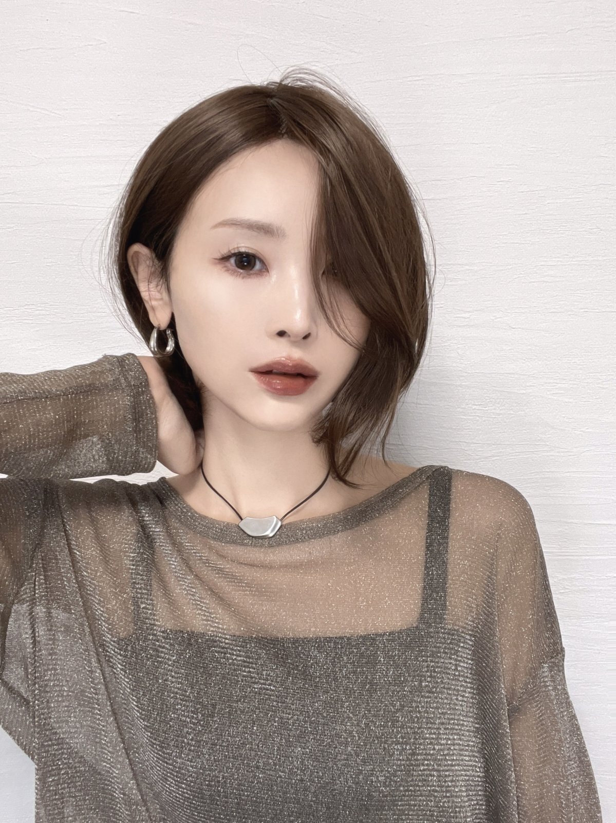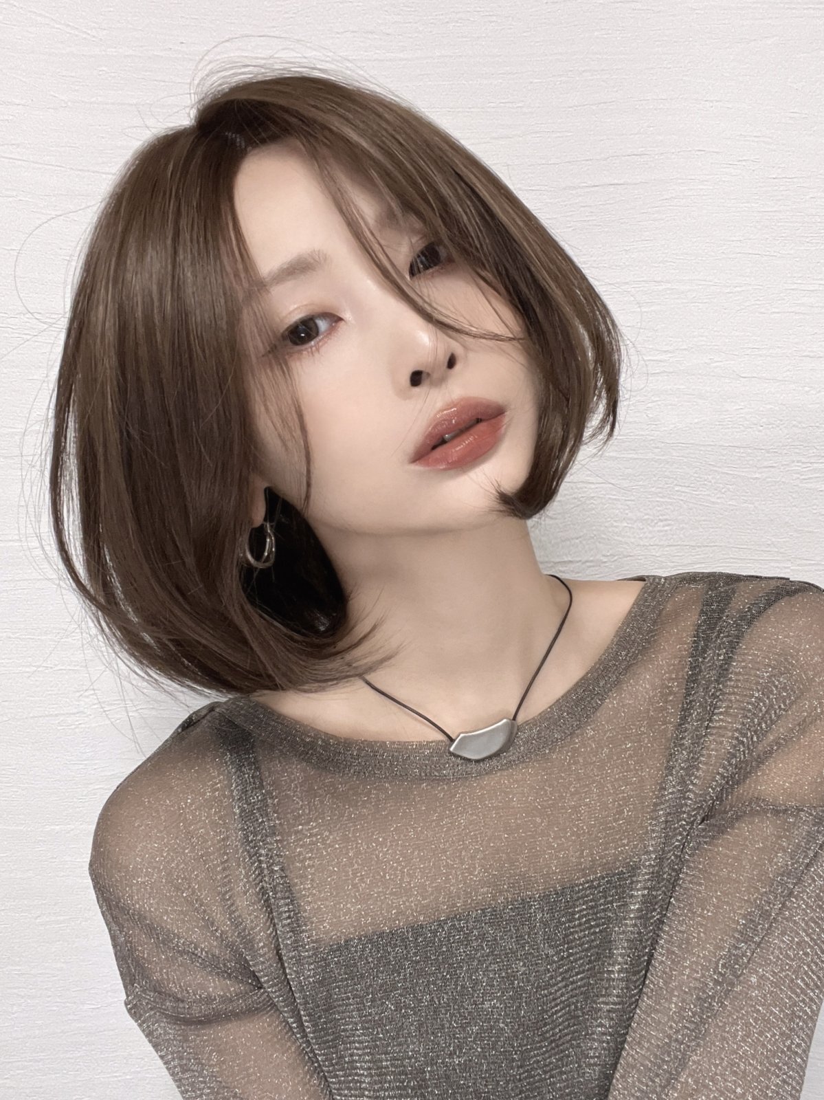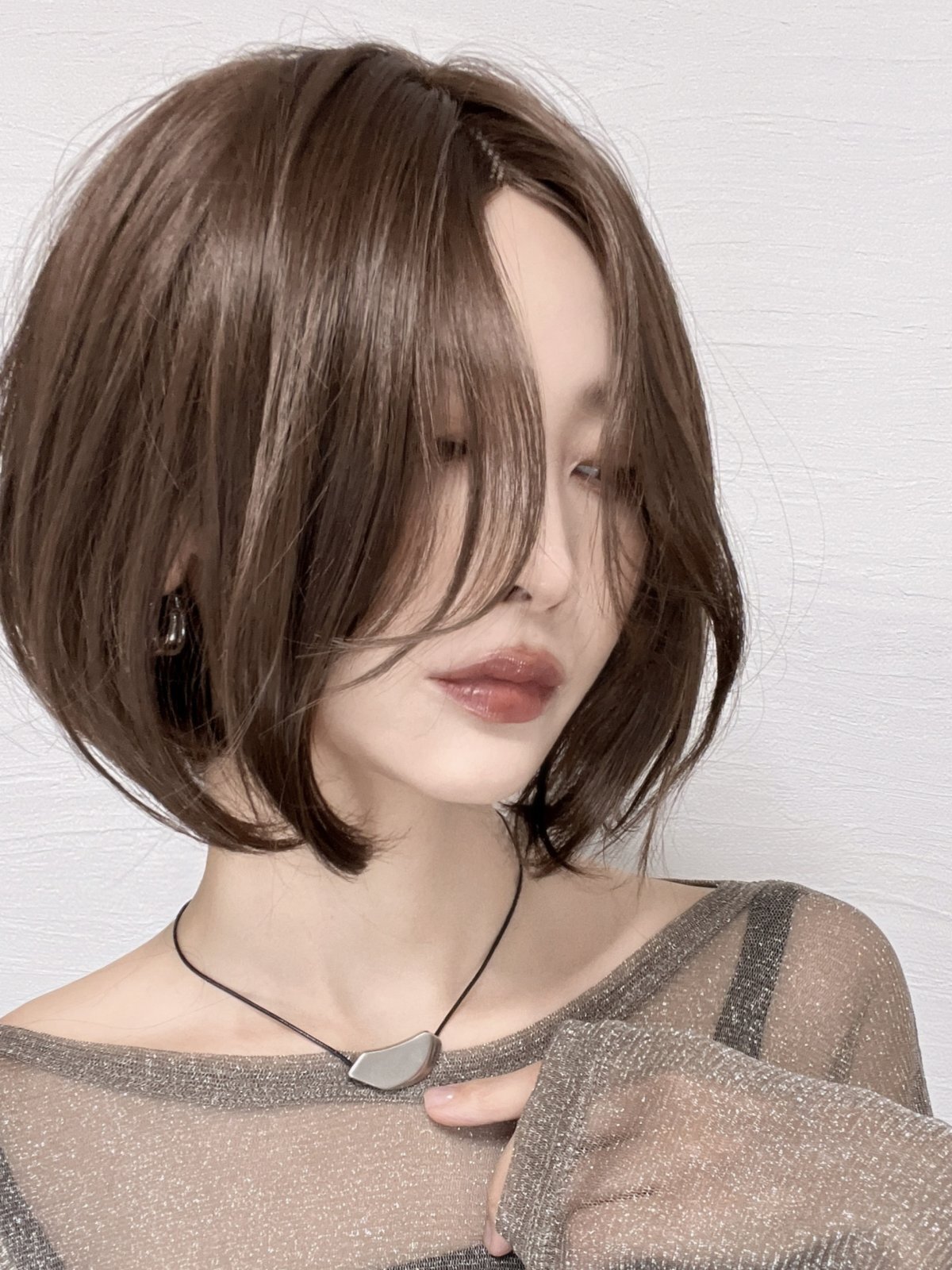 【部分手植え】センターパートエアリーボブ(マロンショコラ)軽量ウィッグ [MS]