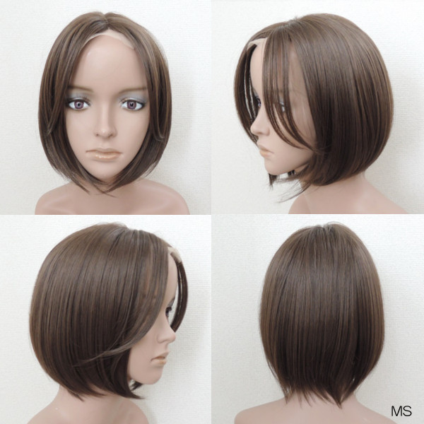 (部分手植え,フロントレース,医療用ウィッグ,レースフロント,ウィッグ,ボブ,ショートボブ,前髪なしボブ,センターパート,ハンドメイド,レースウィッグ,手植えウィッグ,医療用,前下がり)