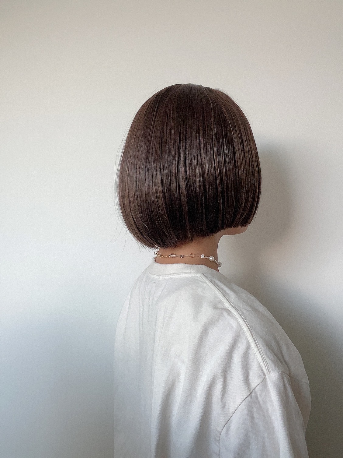 毛先をぷつっとカットした、ボブより短いミニボブ