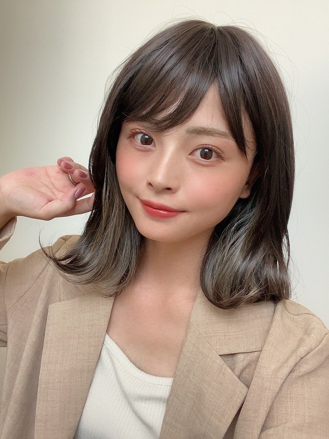 (イヤリングカラー,インナーカラー,インナーカラーミディ,くびれミディアム,くびれミディ,外ハネ,外ハネヘア,ウィッグ,くびれヘア,くびれシルエット,インナーベージュ,インナーグレージュ)