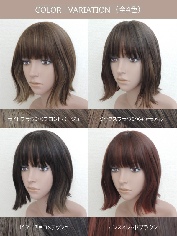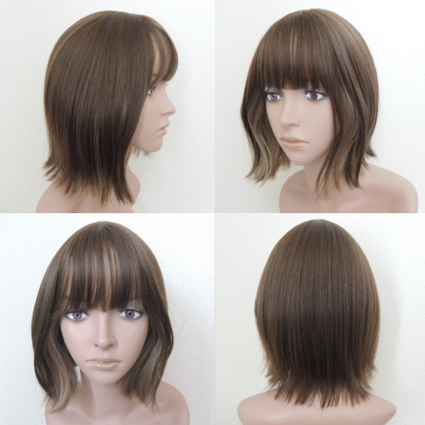 艶消しファイバー【ぷつっとくびれボブ(イヤリングカラー)】ライトブラウン×ブロンドベージュ(軽量ウィッグ)