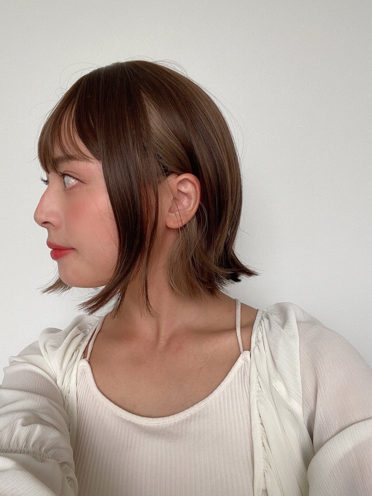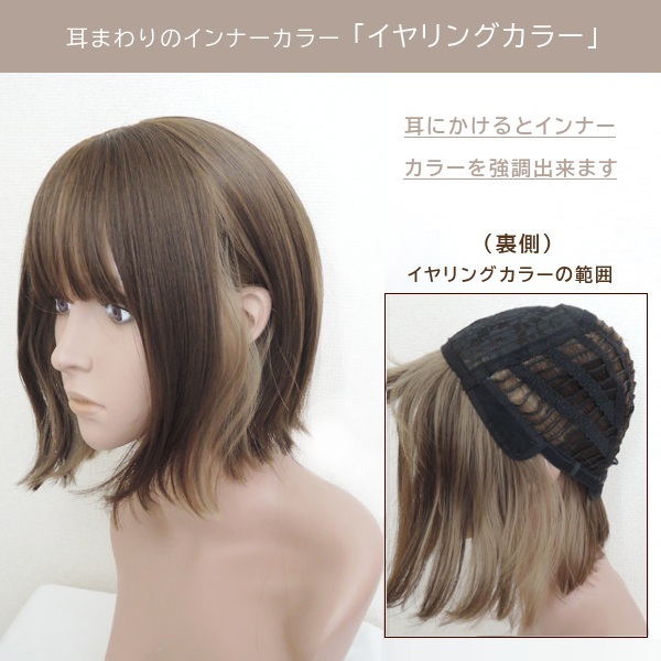 (イヤリングカラー,インナーカラー,インナーボブ,艶消し,テカらない,テカリなし,くびれボブ,ぷつっとボブ,ぱつっとボブ,フェイスレイヤー,外ハネ,外ハネヘア,ウィッグ,くびれヘア,くびれシルエット,トレンドヘア)