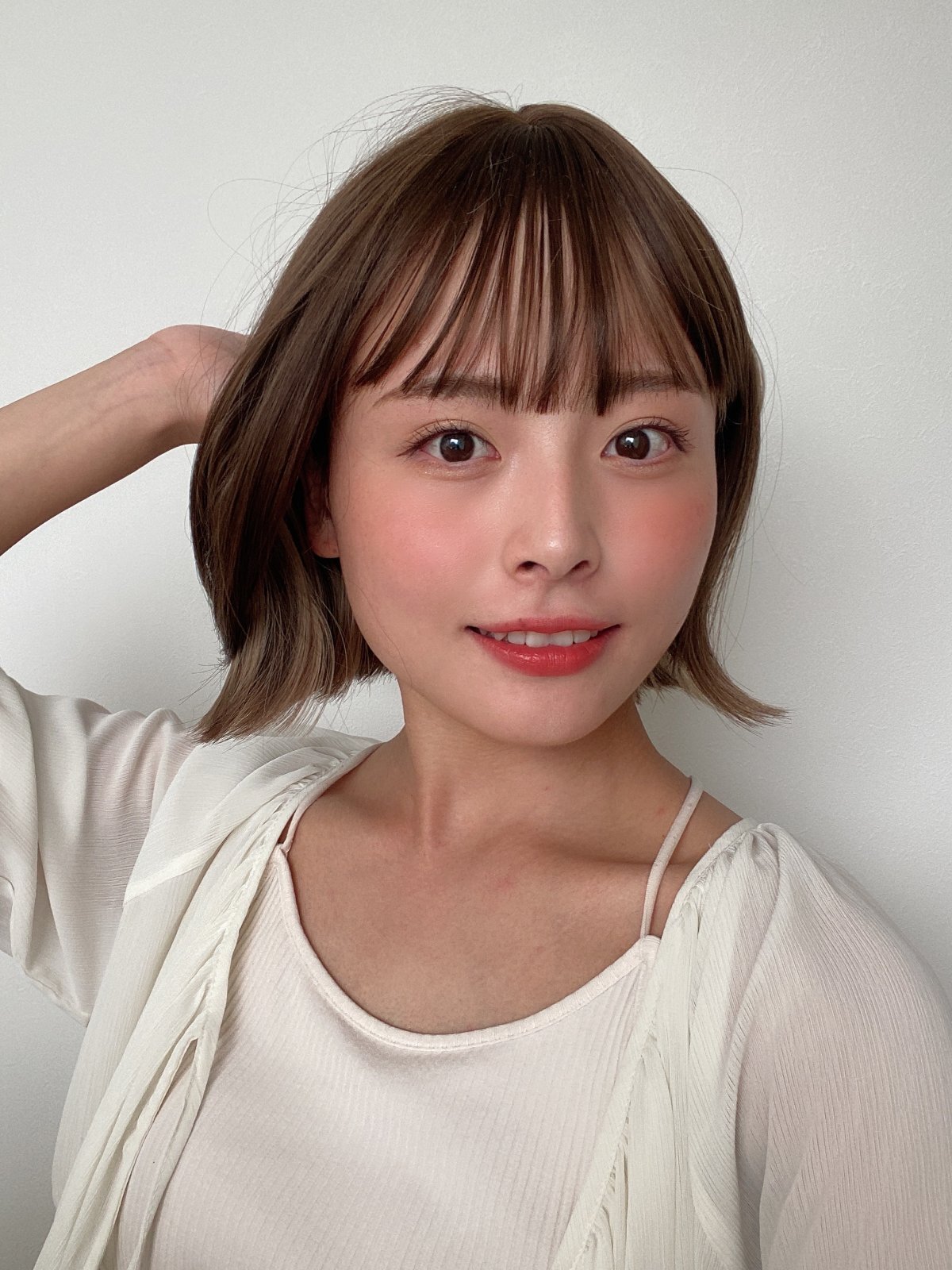 ぱっつん前髪ですが毛先が軽いので斜めにも流せます。