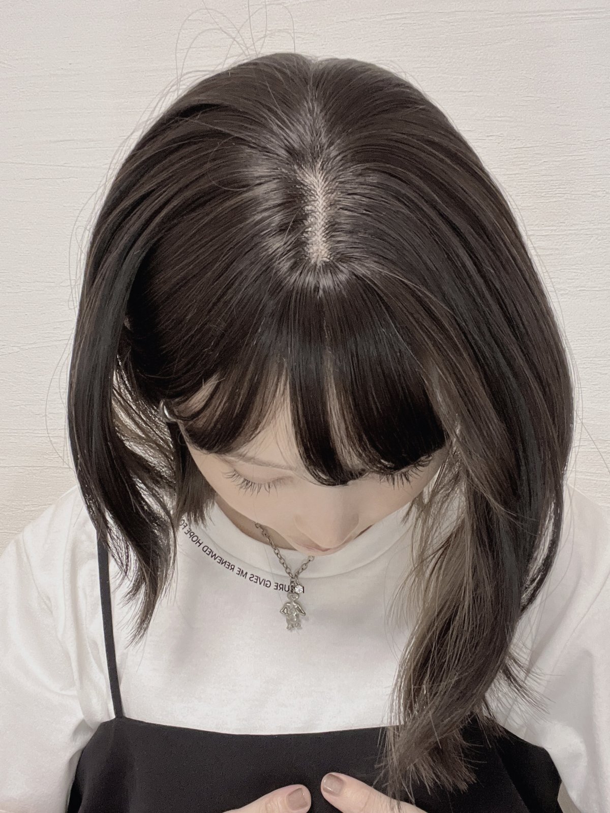 (イヤリングカラー,インナーカラー,インナーボブ,艶消し,テカらない,テカリなし,くびれボブ,ぷつっとボブ,ぱつっとボブ,フェイスレイヤー,外ハネ,外ハネヘア,ウィッグ,くびれヘア,くびれシルエット,トレンドヘア)