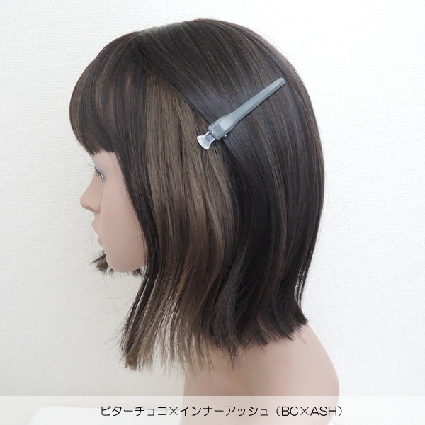 艶消しファイバー【ぷつっとくびれボブ(イヤリングカラー)】ビターチョコ×アッシュ(軽量ウィッグ) [BC×ASH]